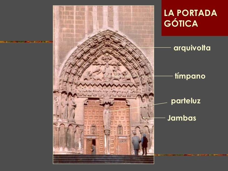 La portada gótica admite la misma composición fundamental de forma abocinada, que la románica pero se multiplican las arquivoltas y se añade una mayor elevación de líneas con más riqueza y finura escultórica guardando siempre en arcos y adornos la forma propia del nuevo estilo.