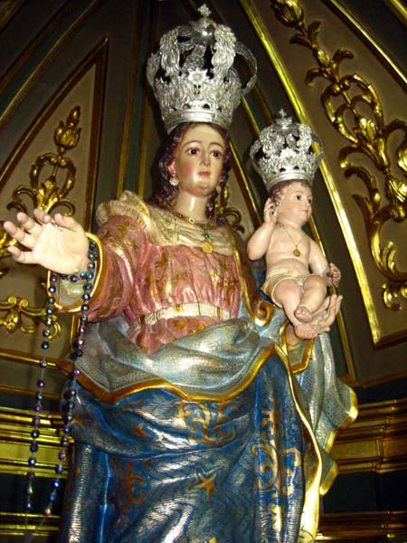 Se trata de la representación de la Virgen del Rosario. Es una imagen espléndida.