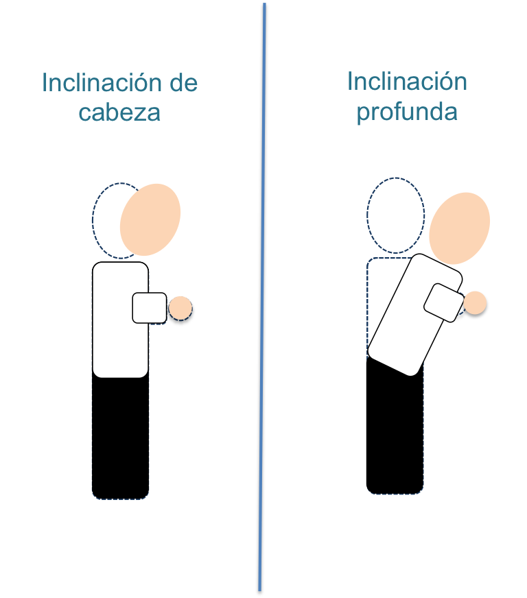 Indica reverencia y honor a las personas o a lo que representan y puede ser de dos tipos: inclinación de cabeza e inclinación de cuerpo o profunda, que se hace desde la cintura.