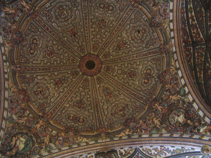 Tiene cúpula de media naranja, enriquecida, al igual que el resto de las bóvedas, con magníficas yeserías policromadas, obra de Juan Areche. En ellas abundan las representaciones de santos y de ángeles.