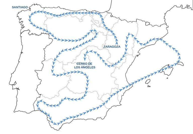Después la imagen peregrinará por los santuarios más importantes de España hasta terminar en el Cerro de los Ángeles, centro espiritual y geográfico de España, el 12 de octubre, fiesta de la Virgen del Pilar.