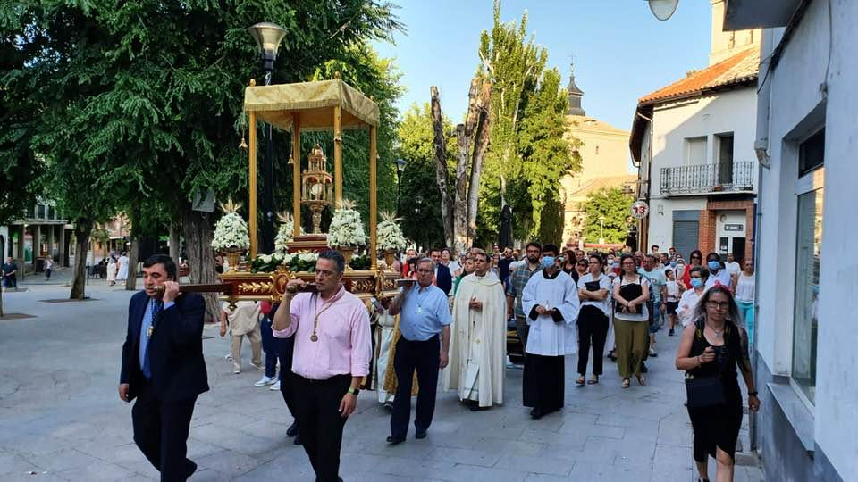y a continuación acompañaremos al Señor verdaderamente presente en el Santísimo Sacramento del altar, desde la parroquia hasta la iglesia de las Hnas. Oblatas del Santísimo Redentor.