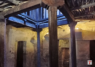 El claustro, un patio con cuatro columnas de madera y un patio de luz, hay que entrar encogidos.